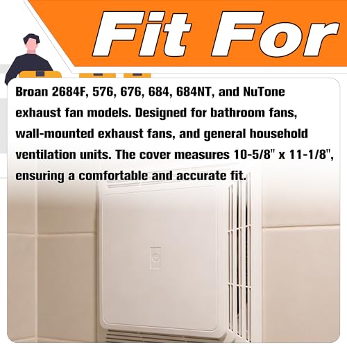 - 【Compatible With】 Compatible with Broan 2684F, 576, 676, 684, 684NT, and NuTone exhaust fan models. Designed for bathroom fans, wall-mounted exhaust fans, and general household ventilation units. The cover measures 10-5/8" x 11-1/8", ensuring a comfortable and accurate fit. Please verify your existing grille size before ordering., 【Replace Part Number】 Direct replacement for OEM part number S97013576. Ideal for restoring proper airflow and appearance when your original grille is yellowed, cracked, or damaged., 【High Quality】 Made of premium ABS plastic for enhanced durability, heat resistance, and long-term performance. The sturdy construction ensures stable ventilation and prevents deformation or breakage over time., 【Easy to Install】 Includes built‑in spring clips for quick, tool‑free installation. Simply align the cover and snap it into place—no professional assistance required., 【Purchase Description】 Before purchasing, ensure that the model, year, appearance and function are consistent with the original.If you receive any issues with the product, please contact us promptly and we will provide a perfect solution.