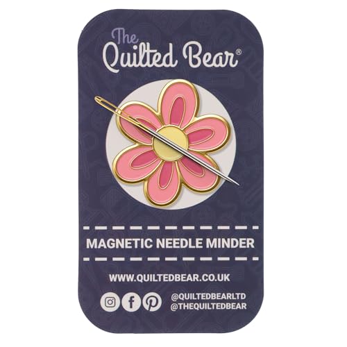 The Quilted Bear Magnetic Needle Minder for Cross Stitch, Embroidery - Magnet Holder for Sewing Needles, Cute Accessory for Hoops, Sewing Kits, Quilting, Sashiko, Broderie - Pink Flower