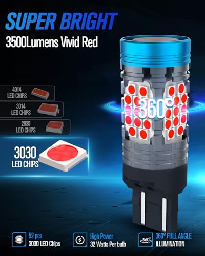 - 【1000% Brightness Increase】Evntyps 7440 led tail light bulb is equipped with 52pcs newest high-brightness red led 3030 chips,Each 7443 led bulb with built in resistor outputs 3500LM brightness brilliant red light,which can help others notice your vehicle faster and clearer even in the bad weather, 【Canbus Ready】The evntyps 7443 led bulb red has built-in the 2025 latest resistor, CANBUS Error Free for 99% vehicles.No need to purchase extra load resistors and crack circuits.When this red 7443 brake light bulb is used for the rear turn signals,it can effectively prevent 99% of vehicles' hyper flash, 【5-Layer Cooling System】IP68 waterproof and dustproof. The 7443 brake light replacement bulb built-in 2025 stable current IC driver avoids digital or VHF radio signal interference. This 7443 stop light bulb equipped with 2024 latest cooling system - Intelligent IC control for heat dissipation + 14,000RPM silent turbo fan + aluminum cooling ring + 6063 aviation aluminum lamp body directly doubles heat dissipation+ electroplated copper plug for heat dissipation, ensuring longer lifespan up to 60,000 hours, 【Plug and Play】Thanks to the 1:1 OEM plug design and polarity-free design, this canbus 7443 rear turn signal bulb can be installed quickly in just 5 minutes.Plug-and-play—no wiring modifications needed, 【Applicable Bulb Models】 This 7444na led bulb anti hyper flash fit for tail light, brake light, rear turn signal light,; Fitment for 1157 2057 2357 7528 1016 1034 1034A 1035 1157A 1196 198 2057A 2357A 2397 3496 7528L 94 BAY15D p21/5w etc, 【Good Service】If you have tried several types of bulbs and they have not met your requirements, please give this canbus ready 7440 led bulb a try. It will fix the hyper flash and error codes for you. If you have any issues, please contact our after-sales team through Amazon for assistance