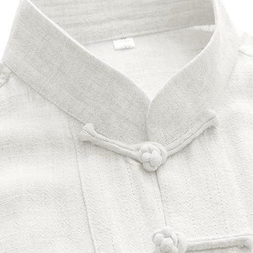 Chinese Traditional Clothes Linen Tang Suit Men Long Sleeve Buttons Mandarin Collar Shirt Casual Arts Outfits (White, L)