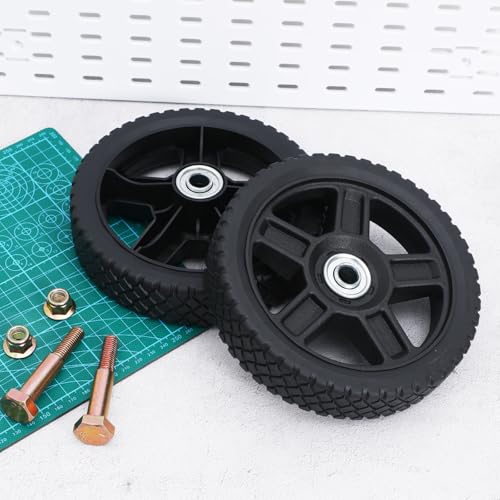 GLEAVI Standard Push Mower Replacement Wheels, 2 Pieces 7-Inch Plastic Lawn Mower Tires with Screws,