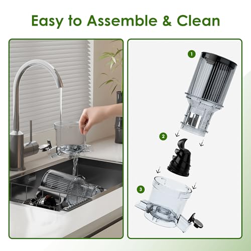 - [Smart Touch Screen & 2 Speed Modes]: Effortlessly operate this WHALL cold press juicer with a smart touch screen panel—simply press the power button and select functions for different ingredients. The 200W motor offers two speed modes: [Soft Mode] for watermelons and oranges, and [Hard Mode] for carrots and celeries, while the reverse function prevents clogging. Ideal for busy households seeking convenient, versatile juicing with minimal effort., [Upgraded Technology & High Juice Yield]: Our masticating juicer features an enhanced spiral auger that increases cutting surface area, boosting juice yield by 30% for richer, nutrient-dense extracts. With dual mesh sizes and a 4.35'' large feed chute, it handles whole fruits and vegetables easily, and the reverse function reduces blockages. Perfect for health-conscious users who want high and pure nutrition from fresh produce., [Ergonomic Design & Quiet Operation]: Designed for comfort and safety, this slow juicer includes a 45° angled control panel, durable stainless steel body, and vibration-absorbing suction cups that ensure quiet operation. The enhanced cooling system prolongs lifespan, and the safety lock automatically pauses when the lid is open. Ideal for families seeking a reliable, low-noise appliance for daily use., [Easy to Disassemble and Clean]: Quickly disassemble this cold press juicer using the installment marks and push-button mechanism—cleaning takes minutes with the included brush. Its user-friendly design saves time and maintains hygiene, making it great for regular juicing without hassle. Suitable for beginners and pros who prioritize easy maintenance., 【12-month After-Sales Support】:This product comes with a 1-year guarantee to demonstrate the value we place on quality. If you encounter any issues during use, need assistance, or have any suggestions, please feel free to contact our after-sales email anytime. We will resolve your concerns within 24 hours in a manner that satisfies you.
