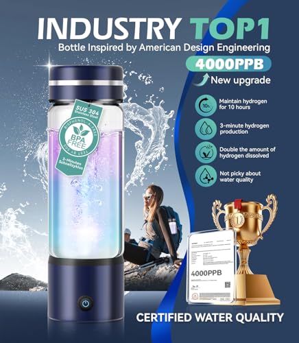 4.0 Upgrade Hydrogen Water Bottle & Double Hydrogen Content 【NO.1-100% Odorless】【SGS Certification - 4000PPB】 Hydrogen Water Bottle - 2025 SPE PEM Technique, Applicable to Various Water