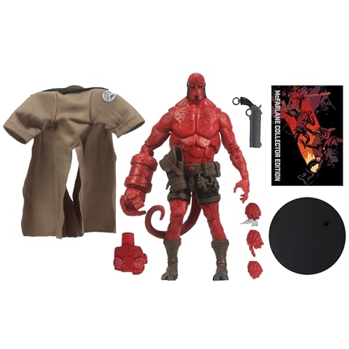 - Incredibly detailed 7” scale figure based on Mike Mignola's Hellboy, published by Dark Horse Comics, Designed with Ultra Articulation with up to 22 moving parts for full range of posing and play, Includes removable soft goods jacket, 4 alternate hands, pistol and display base, Includes a collectible art card with character art on the front, and character biography on the back, Collect all McFARLANE COLLECTOR EDITION figures