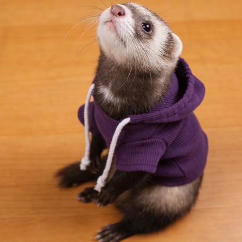 FAVOMOTO Ferret Winter Hoodie Small Pet Sweatshirt Fleece Warm Coat Purple M for Outdoor Cold Weather