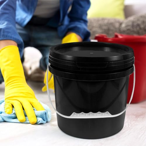 OUNONA 5l Food-Grade Pp Sealed Paint Bucket with Lid, Black Plastic Storage Container for Painting and Art