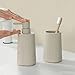 GAHEFY Beige Bathroom Accessories Set, 2-Piece Soap Dispenser and Toothbrush Holder Set, Modern ABS Countertop Bathroom Set for Bathroom Vanity (Beige)