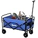 Outsunny Collapsible Folding Wagon Cart, Heavy Duty Outdoor Utility Garden Cart with Universal Wheels and Adjustable Handle for Sports, Camping, Shopping, Blue