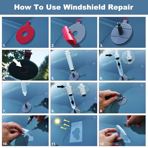 - ✅UPGRADE DESIGN - Professional quality Do-It-Yourself repair windshield repair kit for chips and cracks. The windshield repair kit is made of the newly designed pressure syringes, quickly exclude air in cracks. And can helps you minimize the appearance to achieve better repair effects., ✅ Vacuum Design - Unique vacuum design will prevent air getting in the gel and effect on the repair outcome. This car windshield repair kit have a vacuum function to quickly remove the air from the crack and the reinforced injection molding sealing head can generate strong pressure to force the resin into the crack,it helps you minimize the crack to achieve better windshield repair effects., ✅ Upgrade Repair Fluid - Our upgraded windshield chip repair kit contains a special High penetration resin repair fluid. The shear strength can reach to 20PA. The designed with the new type of injection head that generates strong pressure to repair the crack and remove air from cracks, windshield chip repair kit can pressurize the resin for better penetration into chips or cracks for optimal repair effects., ✅ Widely Use - Windshield Repair Kit is suitable for repairs all types of laminated windshields, such as half-moon cracks, loophole, star-shaped damage, cobwebs, long line crack, scratch, crack not more than 12 inches/ 30 cm and round damage not more than one inch in diameter. (Tip: Not work for cellphone screen.), ✅ Safe & Warranty - All material without chemicals or toxic material. We provide 30 days of quality for the windshield repair kit, If you have any quality-related issues with this Windshield Crack Repair Kit, please feel free to contact us, we can provide technical support when you need.