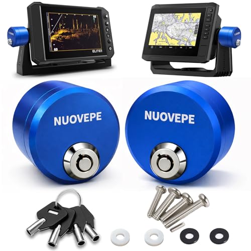 NUOVEPE Aluminum Fish Finder Lock 2 Pack, Round Fishing Graph Security Lock for Gimbal Mount, Anti-Theft Marine GPS Unit Lock Compatible with Garmin, Lowrance, Humminbird (Blue)