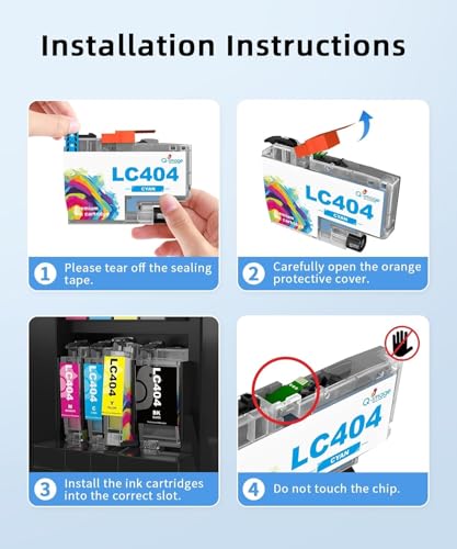 - Model Name: compatible LC404 LC 404 LC-404 ink cartridges replacement for brother ink cartridges lc404,brother mfc-j1205w ink cartridges, High Printer Compatibility: Brother MFC-J1215W MFC-J1205W MFC-J1205W XL Printer, Package contents:1 x Black LC404, 1 x Cyan LC404, 1 x Magenta LC404, 1 x Yellow LC404, 4 LC404 cartridges in total(Brother ink cartridges lc404 4 packs), Notice:If this printer error "cartridge not recognized","The printer does not have enough ink",please reinstall the cartridge until it is recognised., Q-image is focusing on providing our customers high-quality printing and makes your daily printing more professional and easier