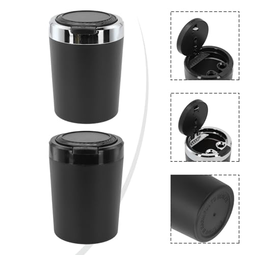 - 【Portable and Convenient】This car Ash tray is designed to be portable and fits most car cup holders, allowing you to easily use it while on the go. Its compact size and lightweight make it convenient to carry and use wherever you need it., 【Secure Closure and Prevention】Featuring a lid, this Ash tray ensures a secure closure, bad smells from spreading and keeping your car fresh and clean. It effectively contains ash and small garbage like fruit peels and paper scraps, eliminating any potential mess., 【Enhanced Visibility with LED Light】Equipped with a cool blue LED light, this Ash tray automatically lights up when you open and lift the lid. It improves night vision and ensures clear visibility of the tray, making it easy to use even in low-light conditions., 【Easy to Clean and Maintain】With a detachable liner, this car Ash tray is easy to clean and maintain. The removable liner allows for convenient disposal of ash and garbage, making the cleaning process quick and hassle-free., 【Stylish and Design】Featuring a cylinder-shaped design, this car Ash tray adds a touch of elegance and luxury to your car interior. Its sleek and classy appearance makes it visually appealing, especially for those who appreciate sophisticated aesthetics.