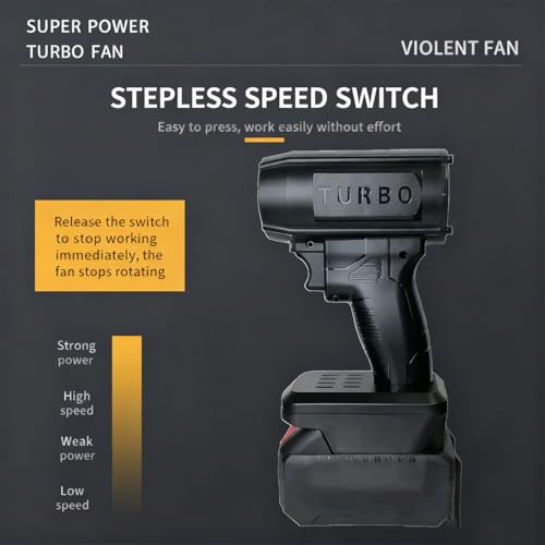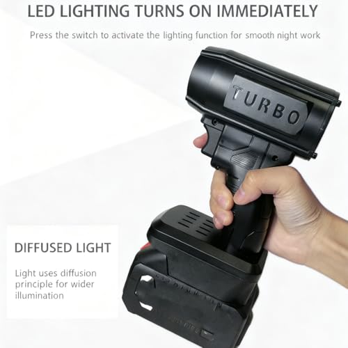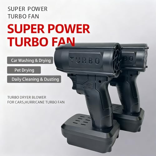 - 【Industrial-Grade High-Power Motor】Equipped with a high-speed 80,000 RPM motor, this jet blower 2.0 delivers a staggering 200 MPH wind speed. With 1150g of blowing force, it acts as a professional turbo jet blower for snow and heavy debris, making it the most efficient electric cordless leaf blower for your home and garage., 【Universal 18V-21V Battery Compatibility】This versatile cordless jet blower is engineered to work seamlessly with your existing Makita, Milwaukee, or Dewalt 18V-21V batteries (4Ah+). By utilizing your current tool ecosystem, this cordless blower saves you money while providing high-performance power for any car jet blower task., 【Safe Scratch-Free Car Drying】Say goodbye to swirl marks. This car drying blower offers a non-contact solution that is safer than towels. As a dedicated car dryer blower, it blasts moisture out of tight crevices in minutes, serving as the ultimate car blower dryer to prevent rust and protect your vehicle's finish., 【Lightweight One-Hand Operation】Weighing only 0.8 lbs, this handheld blower offers maximum portability without the fatigue. The ergonomic, cordless car dryer design allows for unrestricted movement, making it the perfect handheld snowblower for car use during winter or a quick car blow dryer for a post-wash shine., 【Multi-Scenario Versatile Use】From clearing the patio to inflating air mattresses, this turbo jet fan leaf blower 2.0 does it all. Whether you need a sopladora de nieve para carro or a storm industries blower for workshop dust, this cordless leaf blower replaces multiple tools with one compact, high-velocity solution.