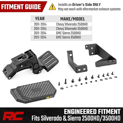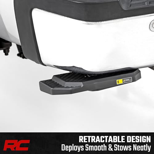 Rough Country Retractable Bed Step for Chevy Silverado & GMC Sierra 2500HD/3500HD (2011-2014) - Driver Side, Manual Pull Tailgate Step, Non-Slip Truck Step