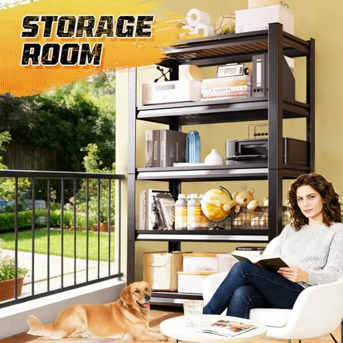 LBVSKK 5-Tier Garage Shelving,Adjustable Heavy Duty Metal Shelving,Storage Shelves for Basement Warehouse Kitchen,72" H x35.4 W x 15.7" D,Black