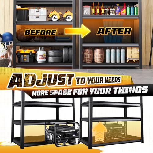 - Your Garage Shelving, Your Way. Adjust It On The Fly. Let’s be real: great garage shelving adapts to your stuff, not the other way around. That’s why every shelf on our heavy-duty metal garage shelving adjusts in seconds—no tools, no hassle. Need room for tall paint cans? Done. Space for flat storage bins? Easy. This is the customizable garage storage shelving that finally makes sense of your chaos., Built To Hold It All: Serious Weight Meets Smart Design. This isn’t flimsy shelving. This is heavy-duty garage shelving engineered with a 3000 lb. total capacity. We’re talking serious metal garage shelving that handles weight with ease. And for ultimate flexibility, the entire unit can split into two separate, full-size racks. One garage shelving purchase, multiple rugged setups for your space., Rock-Solid & Breathable: The Thoughtful Garage Shelving Design. Stability is everything. Our garage shelving features a double split-post metal frame that locks tight and stays steady. Paired with open wire grid shelves, this heavy-duty metal shelving encourages air movement and helps keep your stored items in good condition. It’s the strong, practical garage storage shelving your gear needs., The Last Garage Shelving You’ll Ever Need. For Any Room. Call it garage shelving, but it works everywhere. This is the all-purpose heavy-duty storage champion for your basement, workshop, laundry room, or—of course—your garage. From holiday decorations to power tools, this versatile metal garage shelving system organizes it all. It’s the single garage shelving solution for your entire home., Real Warranty. Real Support. Garage Shelving That Lasts. We stand behind our garage shelving, period. Your heavy-duty metal garage shelving units come with a strong warranty and a support team that’s here to help. Need a part? Have a question? We’re here. This isn’t just a purchase; it’s a long-term investment in garage storage shelving you can trust.