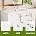 - 30-Inch Bathroom Vanity Size: Measures 30"W x 18.3"D x 34.25"H, delivering an ideal balance of compact footprint and practical storage for everyday bathroom use., Smart & Organized Storage: Features one removable divided drawer, one cabinet door, and double interior door shelves to neatly store toiletries, cosmetics, and cleaning essentials., Easy-Clean Ceramic Sink: Smooth ceramic basin resists stains and water marks, with a built-in overflow hole to help prevent spills and keep the countertop dry., Quiet Soft-Close Hardware: Soft-close doors and drawers operate smoothly and silently, reducing noise while enhancing daily comfort and long-term usability., Durable Modern Construction: Built with a solid wood frame and MDF panels for lasting stability, finished with corrosion-resistant zinc alloy handles for a refined modern look.