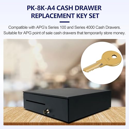 - PK-8K-A4 For APG Cash Drawer Replacement Key Set, Direct Replacement For PK-8K-A4 , Compatible With APG A4 Code Locks, PK-8K-A4 Designed For APG Series 100 And Series 4000 Cash Drawers, Smooth And Reliable Operation, PK-8K-A4 Includes 2 Replacement Keys, Ideal As Spare Keys For Lost, Damaged Or Worn For APG Cash Drawer Keys, PK-8K-A4 High-Quality Structure Ensures Long-Lasting Use For Retail, Restaurant, Office And POS Systems, PK-8K-A4 Easy To Use, No Tools Needed, Cost-Effective Solution To Keep Your For APG Cash Drawer Working Properly