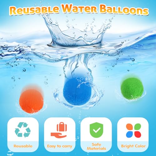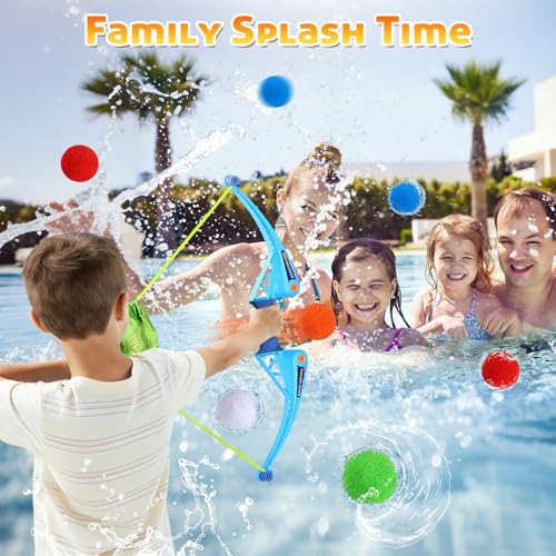 - Reusable Water Balloons: These refillable water balloons are made of high-quality PP material, whichare soft, lightweight, andskin-friendly. They won't hurt when launched with the bow or slingshot, making them perfect forkids aged 3-12, boys and girls, as well as adults. No more worries about bumps from traditionalhard water balls., Durable and Portable: The bows disassemble for compact storage and easy transport. PP balls absorbwater quickly, dry fast, and can be reused multiple times, making this set durable andcost-effective for endless summer play., Eco-Friendly and Sustainable Design: Reusable water balls reduce single-use plastic. Simply soak, play, dry, and store for the nextadventure, making it a sustainable and fun choice for summer outdoor activities., Three Flexible Combinations for Everyone: Choose from three sets to match different play needs: Combination 1 (1 Bow + 10 Colorful Balls)for solo fun, Combination 2 (2 Bows + 25 Balls) for two-player battles, and Combination 3 (2 Bows+ 2 Slingshots + 20 Balls + 4 Flower Balls) for family or group play., Perfect for Parent-Child and Group Play: Ideal for pools, beaches, and backyards, this set encourages family fun, friendly battles, andparent-child interaction. Kids release energy, and adults can relive childhood fun while strengthening bonds.