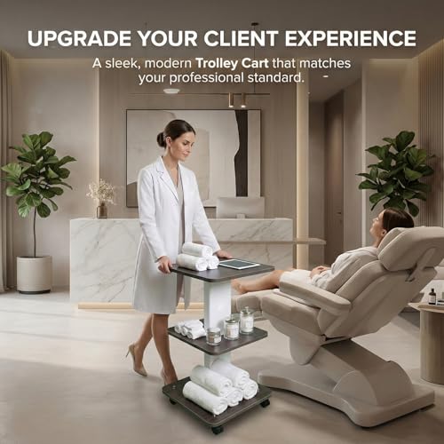 - 1. WHISPER-QUIET MOBILITY WITH LOCKING WHEELS Engineered for serene spa environments, this esthetician cart features 360° swivel casters that glide silently across floors without disrupting client relaxation. Whether you are maneuvering around a massage table or positioning tools for a lash extension session, the smooth rolling mechanism ensures zero friction. Includes two heavy-duty locking brakes to instantly secure the trolley cart in place, providing a stable, wobble-free platform for delicate tasks like tattooing or microblading., 2. HEAVY-DUTY 3-TIER STORAGE FOR MACHINES & TOOLS Maximize your workspace with this high-capacity salon trolley. Unlike flimsy plastic organizers, our reinforced shelves are capable of supporting heavy professional equipment, including facial machines, wax warmers, and portable suction units. The open-tier design offers immediate access to tall bottles, hair styling tools, and bulk supplies, making it the ultimate spa storage system for busy professionals who need efficiency without the clutter., 3. VERSATILE WORKSTATION FOR SALON, NAIL & TATTOO Designed as a multi-functional utility cart, this unit adapts to your specific role. It serves as a perfect nail cart for organizing polishes and UV lamps, a sanitary medical trolley cart for clinic supplies, or a robust tattoo station for inks and needles. Its sleek, professional appearance seamlessly blends into any beauty room, barber shop, or home studio, elevating the look of your business while keeping essentials within arm's reach., 4. STAIN-RESISTANT & EASY-TO-CLEAN SURFACE Hygiene is non-negotiable in the beauty industry. This rolling salon tray is crafted from premium, non-porous materials that resist stains from hair dye, tattoo ink, massage oils, and spilling wax. Simply wipe down the shelves between clients to maintain a pristine, sanitary beauty station. The durable construction ensures the cart remains rust-free and aesthetically pleasing even after years of daily use in high-humidity spa environments., 5. COMPACT SPACE-SAVER WITH QUICK ASSEMBLY Ideal for tight spaces and booth renters, this auxiliary cart (carrito auxiliar) offers vertical storage without occupying valuable floor area. It fits perfectly alongside a pedicure chair or in the corner of a treatment room. The package includes all necessary tools and clear instructions for frustration-free assembly in under 10 minutes, letting you focus on your clients rather than complicated furniture setup.