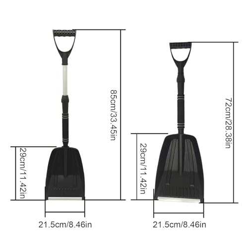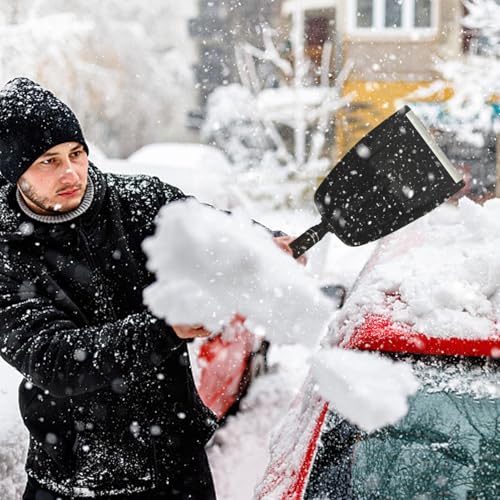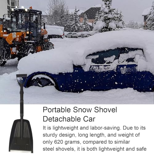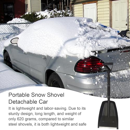 - User-Friendly Design: With its adjustable handle, the snow shovel for car adapts to different user heights, promoting better body alignment and minimizing fatigue when clearing snow from driveways or around cars during harsh winter weather conditions, Not Easy to Deform: The car snow shovel features thicker construction and high-quality aluminum alloy, ensuring heavy-duty snow handling while maintaining a stable connection for efficient use on icy driveways or during winter travel emergencies, Effortless Use: This snow shovel is engineered with a lightweight structure to minimize strain on the user, offering safe handling and enhanced comfort when tackling heavy snow after storms, Easy Storage: This snow shovel for driveway is designed with a compact and portable size, enabling convenient placement under the car seat or inside the vehicle's cargo area, making it an ideal tool for quick snow removal around your home or vehicle, Remove Snow: This heavy duty snow shovel removes snow efficiently, allowing easy access to vehicles even after heavy snowfall, making winter mornings less stressful with its dependable functionality for outdoor use