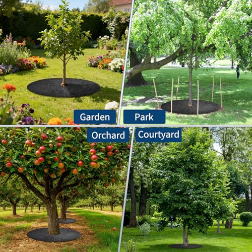 - Complete 6-Pack Set: Includes six heavy-duty rubber mulch rings with a 3" center hole, available in 20", 24", 30", or 36" diameters for tailored landscaping and weed control., Superior Recycled Rubber: Crafted from durable, weather-resistant, and eco-friendly recycled rubber, these mulch mats withstand mowing, trimming, sun, rain, and snow without tearing or fading., Efficient Weed Barrier: Effectively blocks weeds and grass while letting water and nutrients reach roots, promoting healthy growth and reducing maintenance., Easy Custom Fit: Flexible design with pre-cut center holes allows quick DIY installation and trimming to fit around any tree trunk or large plant pot neatly., Versatile Landscaping Use: Ideal for gardens, lawns, parks, patios, and commercial spaces, these weed mats provide professional root protection and a polished, weed-free appearance.
