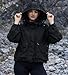PESION Womens Waterproof Plaid Rain Jacket, Lightweight Windproof Outdoor Trench Coat Windbreaker with Removable Hood, Black, Small