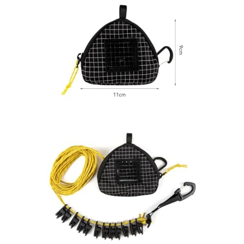 - [PACKAGE CONTENTS] Package contains one 5 meter nylon hanging rope with integrated storage pouch and a secure clip, compact and ready for camping, travel, beach days and laundry ., [ADJUSTABLE TENSION] Pull-to-tighten design locks the line at your desired tension within 5 meters; for longer spans between 3.5 and 7 meters extend then re-tension for stable drying., [PALM-SIZED PORTABILITY] Folds into a small pouch and weighs just 80 grams so it fits in a backpack, suitcase or glove box without adding bulk., [ NYLON CONSTRUCTION] Made from strong nylon fiber with reliable load bearing for towels, shirts and light gear without excessive sag., [NIGHT VISIBILITY] Reflective thread increases visibility in low light so you can find the line at campsites or parking areas and pack up quickly.