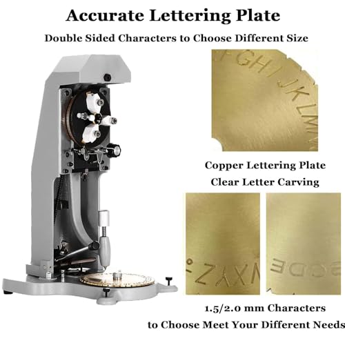 - 【DIY sculpture】The carving machine can add 26 English letters and numbers from 1 to 9 to 8 symbols, and can be carved by DIY combination.The engraved character size is 1.5-2.0mm., 【Sturdy Inside Engraver】The all-metal construction of this inner ring engraving machine ensures durability and stability. Equipped with adjustable support feet, three jaws, and a ring clamp, it provides a secure setup for quick and seamless engraving on the inner surfaces of rings., 【High-Strength Engraving Pen】The inner ring engraving machine is equipped with a steel engraving head, which is strong and sharp. It can engrave gold, silver and other materials. It is automatically centered when engraving, with equal spacing and uniform depth to ensure accurate engraving., 【Easy to Method】Using the Inside Ring Engraver is a breeze—simply place the ring in the chuck and secure it, select your desired character, and method the pen and handle together for smooth engraving. Enjoy effortless and accurate results every time., 【Versatile Applications】This jewelry stamper is designed for quick and easy engraving on the inside of various rings and is almost no different from hand engraving. Once you have it, you can create your personalized ring.