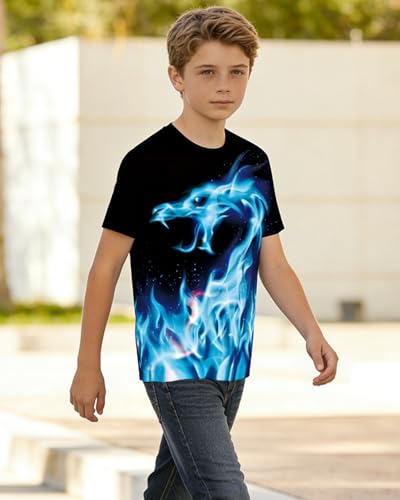 Rynzola Boys 3D Print T-Shirts Girls Summer Colorful Design Graphic Tee Kids Crewneck Short Sleeve Causal Tops(Dragon,12-14T)