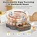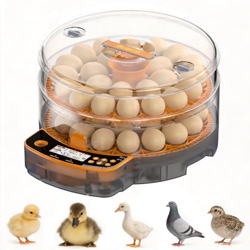 - 360° Automatic Egg Turning & Smart Climate Control: Eggs rotate automatically every 90 minutes for even heat distribution, then stop 3 days before hatching to protect embryos. Combined with adjustable air vents and humidity ports, it maintains an optimal environment even in extreme temperatures (32–122℉), boosting hatch rates, Large Water Tank & Air Filtration System: No more constant checking! The high-capacity water tank supports a full incubation cycle with minimal refills. Built-in filter cotton purifies incoming air, blocking dust and impurities for a cleaner, oxygen-rich hatching environment, 3-in-1 Incubator, Hatcher & Brooder with HD Display: All-in-one design saves space and cost—no extra equipment needed. The large HD digital display shows real-time temperature, humidity, and incubation days, making it easy for beginners and pros to monitor every stage, Built-in LED Egg Candler & 48 Egg Capacity: Observe embryo development anytime without extra tools. The safe cold LED light lets you clearly check veins and growth without harming embryos. Holds up to 48 eggs with adjustable trays for chicken, duck, quail, goose, and pigeon eggs, 360° Clear View & Perfect Educational Gift: Transparent dome provides a full view of the entire hatching process. A fun and educational experience for kids and families—great for teaching, bonding, and sparking curiosity about life and nature