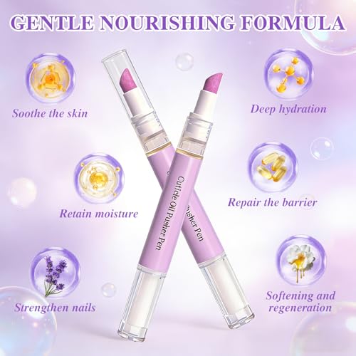 - 【2-in-1 Cuticle Pusher & Oil Pen】Combines a ceramic cuticle pusher tip with nourishing cuticle oil in one pen—effortlessly remove dead skin and hydrate cuticles in a single step. Daily use leaves nail edges neater and smoother, saving time while helping you achieve well-groomed hands with ease., 【Gentle Ceramic Tip for Delicate Care】Features a fine ceramic tip that gently removes excess dead skin and hangnails without scratching the nail surface. Safe and easy to use for both beginners and nail art enthusiasts, making cuticle care simple and comfortable., 【Lightweight Nourishing Formula, Quick Absorption】The cuticle oil has a lightweight texture that absorbs quickly—no greasy residue. With continued use, it deeply hydrates dry cuticles, reduces roughness and hangnails, leaving nails and surrounding skin softer and more radiant., 【Pleasant Floral Scent, Elevated Care Experience】Each application offers a refined and soothing floral fragrance, turning daily nail care into a relaxing ritual. Enjoy a moment of self-care while keeping your cuticles healthy and pampered., 【Compact & Portable, Instant Glow Anytime, Anywhere】The pen-style design is lightweight and easy to carry in a bag or pocket. Whether at the office, traveling, or on the go, simply twist the pen to hydrate cuticles anytime—keeping your hands looking polished and radiant.