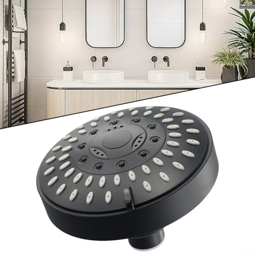 - WATER-SAVING FLOW CONTROL: Adjust from 2.5 GPM high pressure to 1.5 GPM low flow with removable restrictor — enjoy rainfall comfort while conserving water, FIVE-SPEED SPRAY MODES: Switch instantly between gentle mist, pulsating massage, and full-coverage spray — tailored for every shower mood and need, 360° ROTATABLE DESIGN: Swivel spray head pivots smoothly on brass ball joint — For aim precisely without repositioning arm or tile drilling, 4-INCH TOP SPRAY COVERAGE: Compact black shower head delivers wide, even distribution — perfect for small bathrooms and low-ceiling showers, TOOL- INSTALLATION: Fits standard G1/2'' connection in minutes — solid ABS construction resists cracking, leaks, and long lasting performance