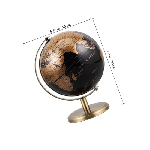 OSOLADY European Style 14cm Antique Desktop Globe Ornament with Black Gold English Map and Vintage Copper