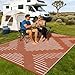 Ixidelu 9x12 Waterproof Outdoor Rug Clearance Lines Reversible RV Mat Plastic Straw Rug Foldable Easy Clean with Carry Bag Outdoor Carpet for Patio Deck Balcony (Orange Red White)