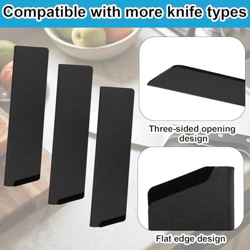 3pcs Knife Sheaths, Black ABS Chef Knife Covers with Fleece Lining Universal Protector Edge Sleeves Replacement for 6-8 Inch Kitchen Knives Secure Storage