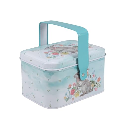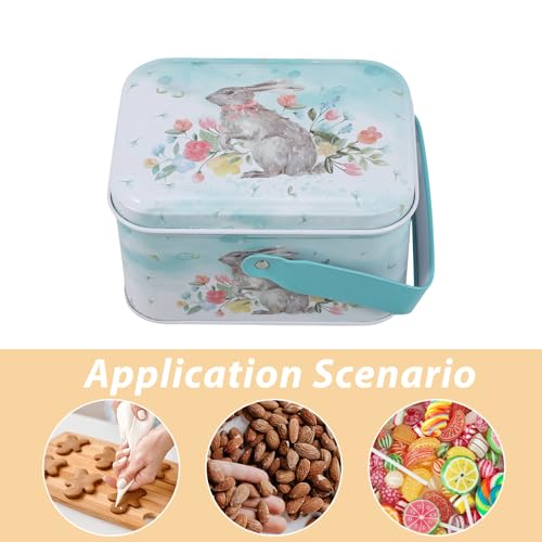 FOMIYES Easter Rabbit Candy Tin with Handle, Small Metal Cookie Jar for Snacks and Chocolates, Decorative