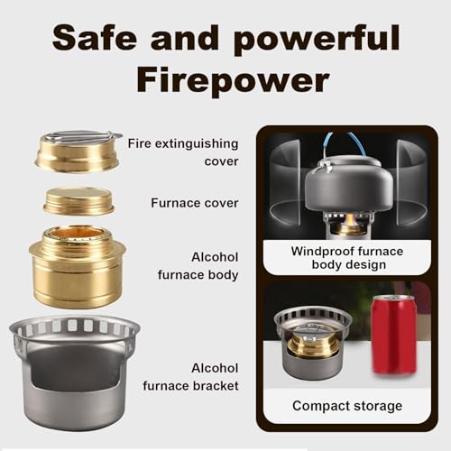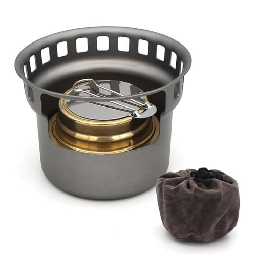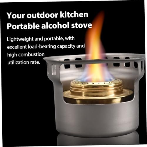 - High Combustion Efficiency - Alcohol stove adopts double-layer design, the top of the stove has two layers with a total of 24 micro-perforations, which can produce a stable flame and heat up faster., OUTDOOR UNIVERSAL STOVE - Widely known among outdoor enthusiasts, the Titanium Alcohol Stove is a high-quality alcohol stove that makes a great addition to your camp kitchen. You can cook instantly anywhere., COMPACT AND PORTABLE - It can be detached and stored in your backpack for easy carrying. Comes with a storage drawstring bag, convenient for you to carry it anywhere. Great for outdoor: camping, hiking, picnicking, travelling, backpacking, mountaineering, fishing and other outdoor activities., Quick Flame Out - One of the drawbacks of alcohol stoves is the inability to control the flame, but this stove comes with a folding flame regulator that allows you to regulate the heat and easily extinguish the flame when you run out., Material: titanium. Made of high quality titanium, never rust, corrosion resistant, good heat resistance, high hardness, no deformation, sturdy structure.