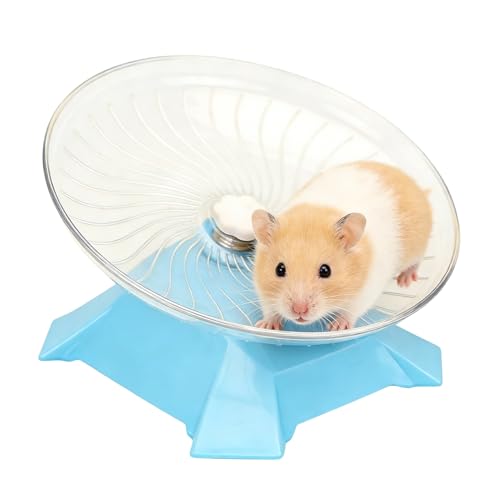 Hamster Running Wheel – 9.4 Inch Silent Flying Disc, Exercise Treadmill, Transparent Non Slip Turntable with Stable Support | Smooth Play Equipment for Small Pets