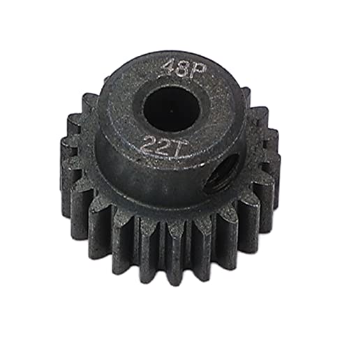 - Precision-Machined Gears: This 48P pinion gear set features fine craftsmanship for smooth rotation and minimal noise, ensuring your RC motor pinion gear delivers consistent performance during high-speed runs or tight cornering on any terrain., Multiple Tooth Options: The RC motor pinion gear set includes 20T, 22T, and 24T gears, giving you flexibility to fine-tune gear ratios for optimal speed, torque, or battery efficiency based on your specific RC car setup and driving style., Wide Compatibility: Designed for 1/10 scale RC vehicles, this RC pinion gear set fits both brushless and brushed motors with a 3.175mm (0.13in) shaft, making it ideal for hobbyists upgrading or repairing their off-road buggies, trucks, or on-road racers., Durable Rust-Resistant Material: Each RC motor pinion gear is made from premium powder metallurgy material that resists wear and corrosion, ensuring long-lasting performance even after extended use in dusty, wet, or humid outdoor conditions., Complete Ready-to-Install Kit: This RC pinion gear set comes with all necessary set screws included, allowing quick and secure installation without needing extra hardware—just slide the gear onto your motor shaft and tighten for reliable power transfer.