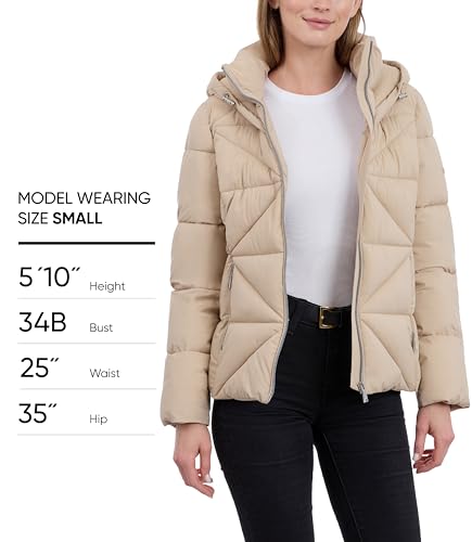 Calvin Klein womens Short Midweight Puffer Jacket With Adjustable Hood, Water Resistant, White Pepper, Medium