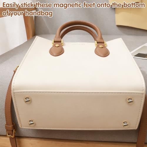 4Pcs Purse Feet for Handbags, Magnetic Feet for Handbags, Premium Metal Magnetic Bag Feet Protectors, No-Hole Design Handbag Heels for Leather & Fabric Bags, Easy Snap-On Base