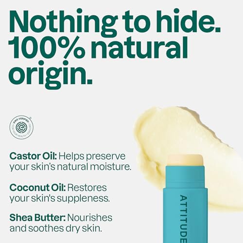 ATTITUDE Lip Balm Duo, EWG Verified, Fragrance Free Moisturizing Lip Care with Castor Oil, Coconut Oil & Shea Butter, Vegan, Unscented, 4.25 g (Pack of 2)