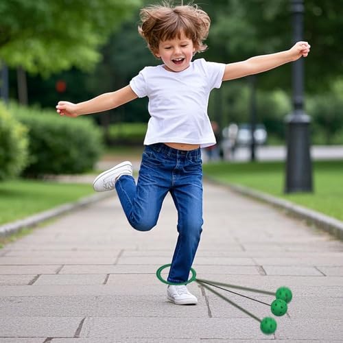 - Soft Yet Strong Build: The skip ball for kids is crafted from high-quality PP and soft materials, ensuring safety during use while providing a fun playtime experience; perfect for kindergarten-aged children to enjoy outdoor activities, Jumping for Strength: This ankle skip ball promotes leg muscle growth in children via repetitive jumping and kicking motions, improving flexibility and enabling hours of energetic play in garden or at the park with friends, Fun and Engaging Exercise: Designed for active play, the skip ball for boys allows kids to skip on a leg and kick with the other, fostering coordination and balance through engaging movement-based activities, Fun Across Settings: This skip ball for outside ensures active play with its engaging bouncing feature, creating joyful moments in the backyard, garden, or beach, and adding excitement to family vacations, camping trips, and park outings, keeping users entertained anywhere they go, Active Play Companion: This skip ball ankle toy provides a dynamic way to combine fun and fitness, enhancing physical coordination and offering a thoughtful option for group play with friends or family in various social settings