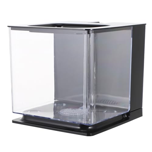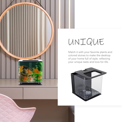 BESPORTBLE Self-Cleaning Small Acrylic Fish Tank with Fry Hatching Container, Black Mini Desktop Aquarium
