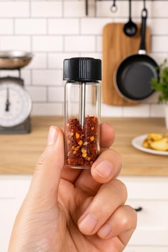 - Designed Exclusively for Culinary Use, Compact Kitchen Spice Solution, Ideal for Seasonings & Fine Spices, Product Dimensions: 2" (5cm) Height x 0.7" (1.7cm) Diameter, Durable Glass bottle for Everyday Cooking