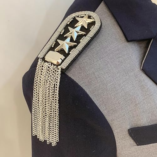 PACKOVE 2pcs Silver Metal Tassel Epaulettes with Dangle Chains, Punk Shoulder Arm Decoration for Men’s