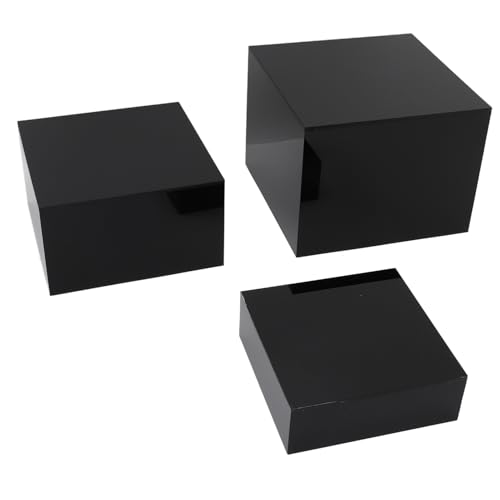 Acrylic Risers Display Stands Clear Cubic Nesting for Dessert Table Buffet Food Display Jewelry Showcase Supermarkets Restaurants Exhibitions 3Pcs Set (Black)