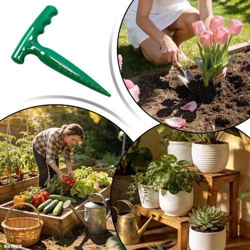 - Featuring a T-shaped ergonomic handle that provides maximum leverage and reduces wrist fatigue when pressing through compacted soil or thick mulch in your garden beds, Constructed from rust-resistant reinforced stainless steel with a smooth, tapered tip that creates clean, uniform holes for seeds or seedlings without disturbing the surrounding root zone, Engineered with integrated measurement markings along the spike to ensure precise planting depth, which is critical for the successful germination of tomatoes, cucumbers, and legumes, Includes a heavy-duty pointed head designed to penetrate various ground types, from soft potting mix in greenhouses to dense clay in outdoor farm plots and backyard flower patches, Designed as an multi-functional tool for transplanting small bulbs and plugs, making it a time-saving accessory for both professional landscapers and weekend home gardeners