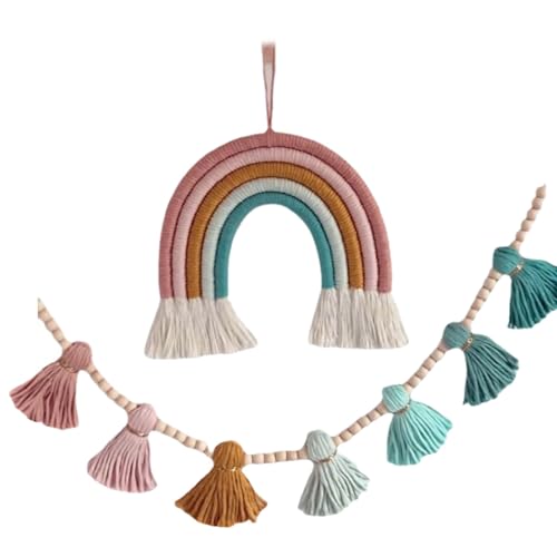- For home decoration enthusiasts, particularly individuals who appreciate personalizing and nature styles in their living space, Expertly decorative pendants, these hangings safe, and with durability and fade, ensuring long time beauty, Enhancing living room, bedrooms, or room decoration and versatiled enough to serve as holiday or party decorations, Easy hanging and with various Decoration styles, these wall hangings a must for color decoration into their homes, Add a touch of warmth and vibrancy to your home with this 2piece set of rainbow woven hangings, features natural Wood beads and soft Tasseled for eye catching decorative accent